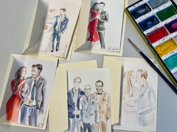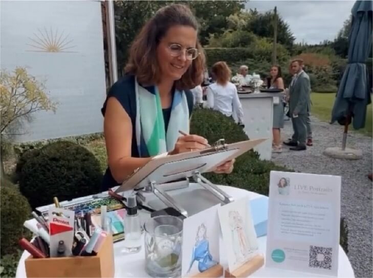 TIPP: Nicht nur zu Hochzeiten bieten Live-Zeichnungen hochwertige Unterhaltung – auch Jahrestage, Taufen, Geburtstage und andere private Feste sind die besten Anlässe für dieses besondere Erlebnis. Der Moment und die fröhlichen Menschen werden zeichnerisch wunderschön festgehalten.