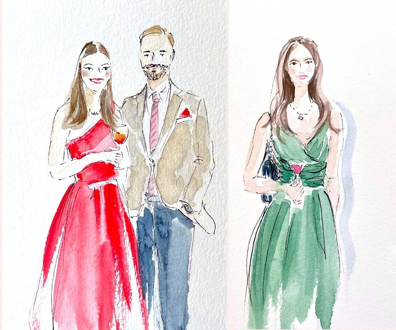 Auf Ihrem Fest porträtiere ich Ihre Gäste einzeln oder paarweise live. Dazu stehen Ihre Gäste mir für wenige Minuten Modell. Dabei können sie sich ganz entspannt unterhalten und bewegen – gerne auch mit dem Glas in der Hand. Anders als bei einem Foto kann ich Dinge auch weglassen und zeichne nur, was gewünscht ist.