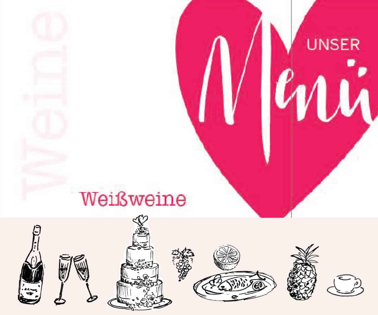 Zum Beispiel Sie Beide gezeichnet, oder besondere Symbole für Ihre Liebe, den malerischen Veranstaltungsort oder Motive feiner Speisen und Cocktails für die Menükarte?
