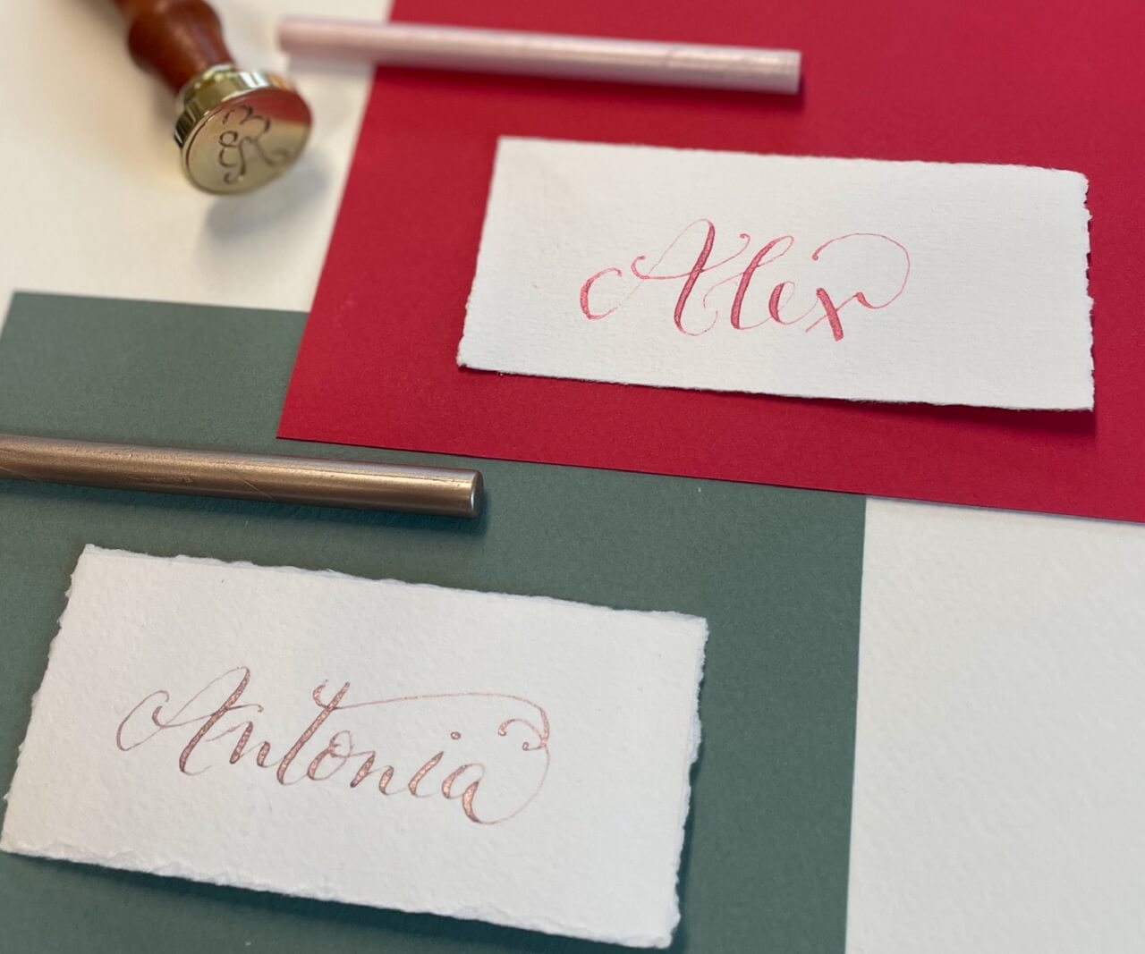 Handkalligrafierte Platzkarten, Menü-Karten, Einladungskarten, etc.
