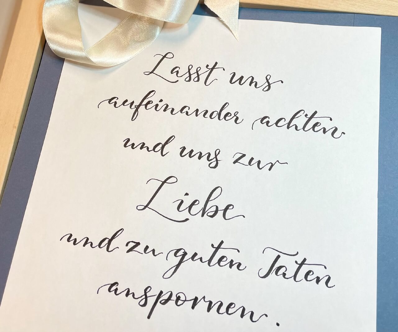 In klassischer oder moderner Kalligrafie gestaltet, bleibt auch Ihr Trauspruch oder Ihr persönliches Leitmotto als Wandbild im täglichen Leben sichtbar und aktuell.